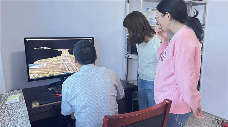 通過無人機(jī)測繪技術(shù)進(jìn)行外業(yè)勘察,準(zhǔn)確地掌握了橋梁、平交口、路基防護(hù)等地物的現(xiàn)場實(shí)際分布情況。此外,設(shè)計(jì)等內(nèi)業(yè)工作也在有序地開展,李總與設(shè)計(jì)人員一起嚴(yán)謹(jǐn)探討公路標(biāo)志設(shè)計(jì)方案,解決設(shè)計(jì)難點(diǎn),確保高質(zhì)量、高質(zhì)量完成設(shè)計(jì)任務(wù)。